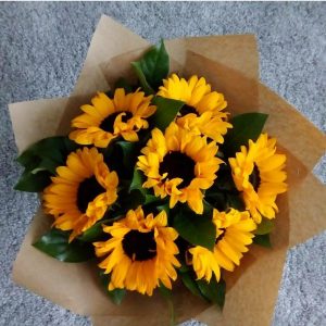 Букет из 9 подсолнухов в стильной упаковке “Прометей”