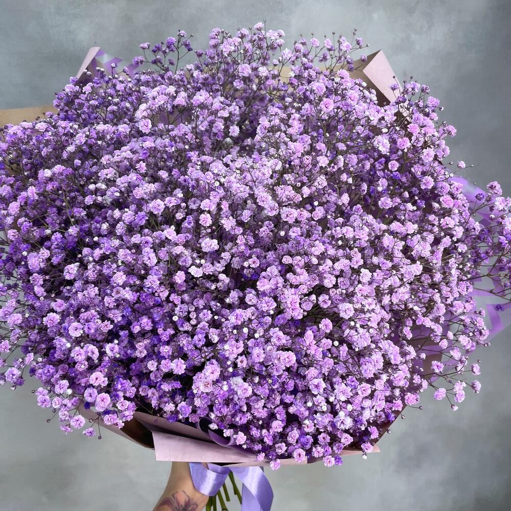 Облако сиреневой гипсофилы в стильном крафте. Минималистичное оформление подчеркивает красоту и изящество цветочков гипсофилы. Букетик очень пышный и воздушный.