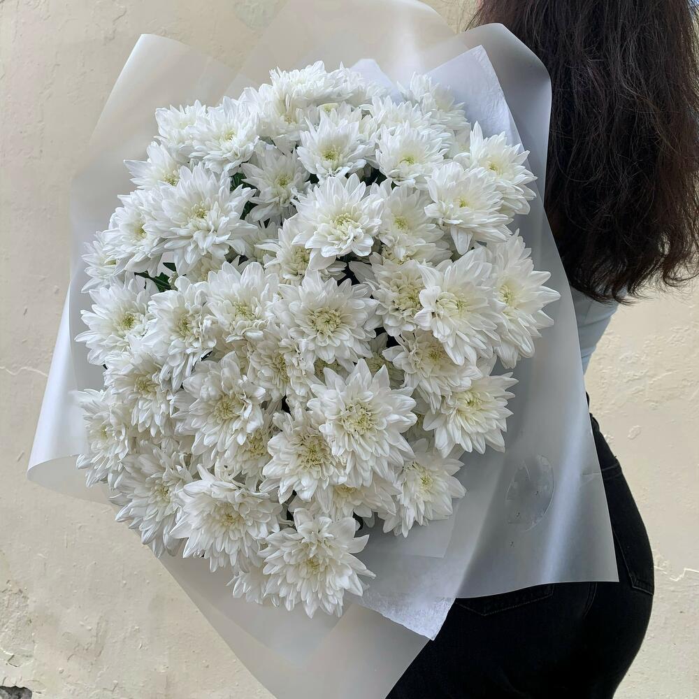 Букет из 15 стеблей кустовой хризантемы в светлой пленке