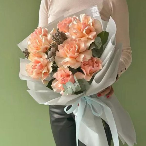 Композиция "Ernest" с голландской розой и эвкалиптом в Островном